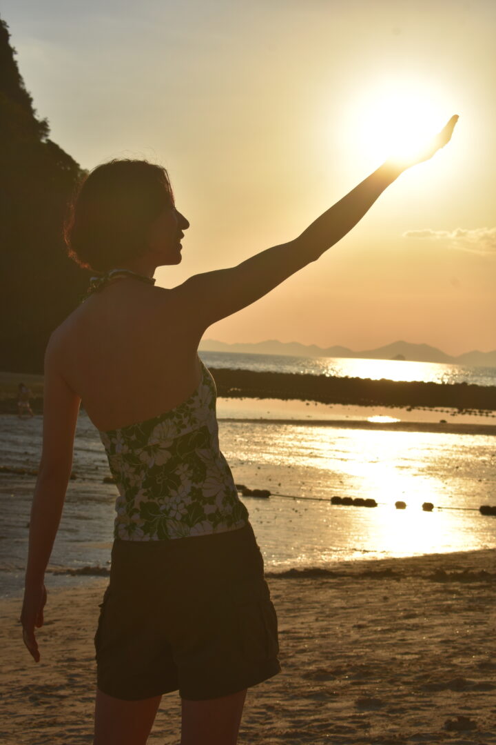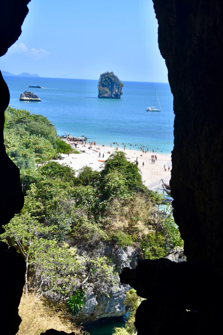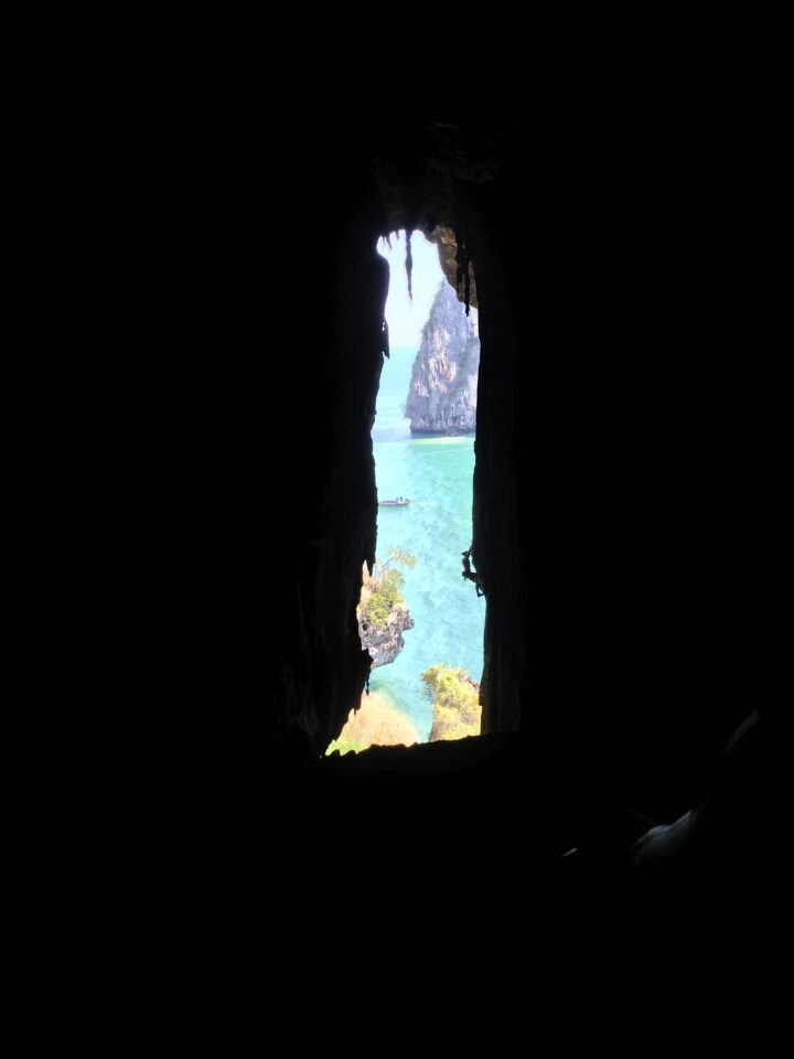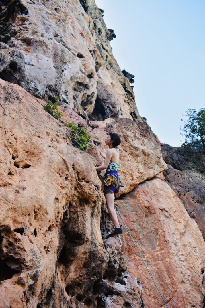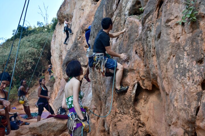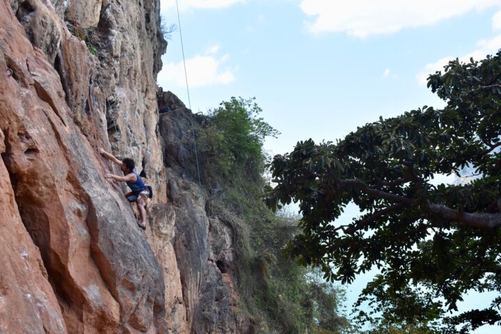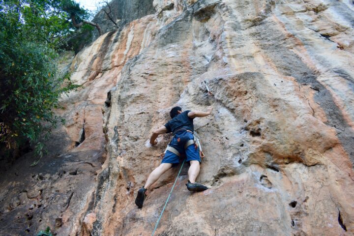 いちばん暑い時間帯を海で過ごしたあとは、再び洞窟へ。あの写真映えする洞窟出口のルートを登りに行きました。でもまだ前のグループが登っていて終わる気配がなかったので、近くのルートを1本登って本日のクライミング終了。
