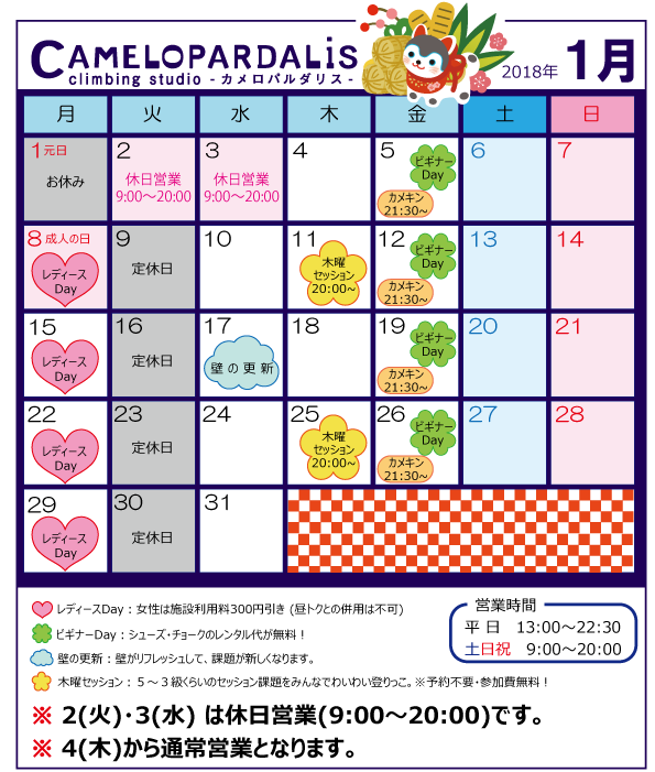 2018年は1月2日(火) 9:00から 営業いたします。お待ちしておりまーす!