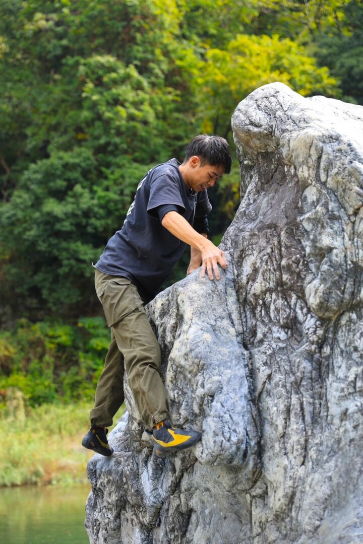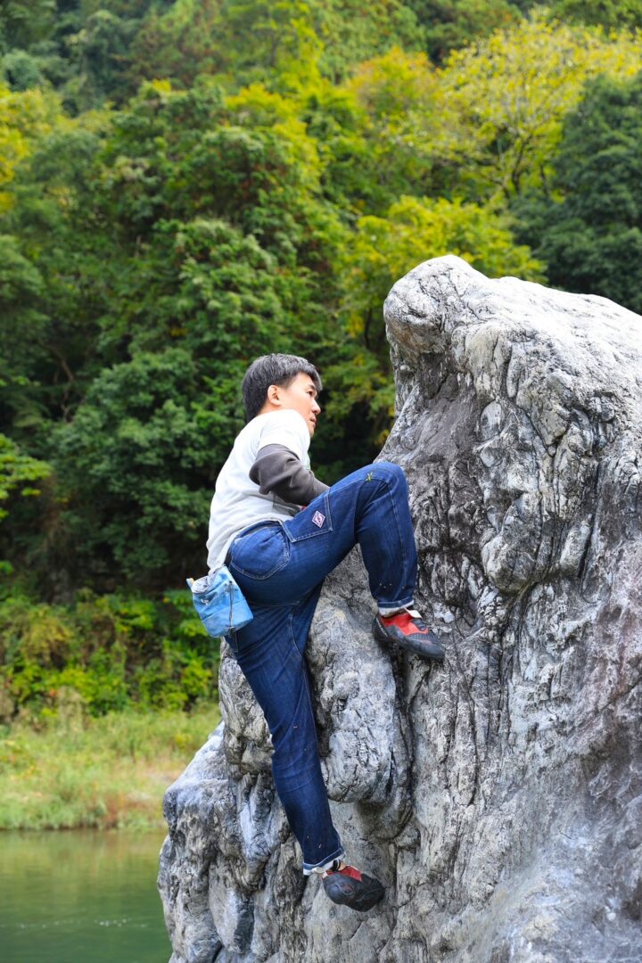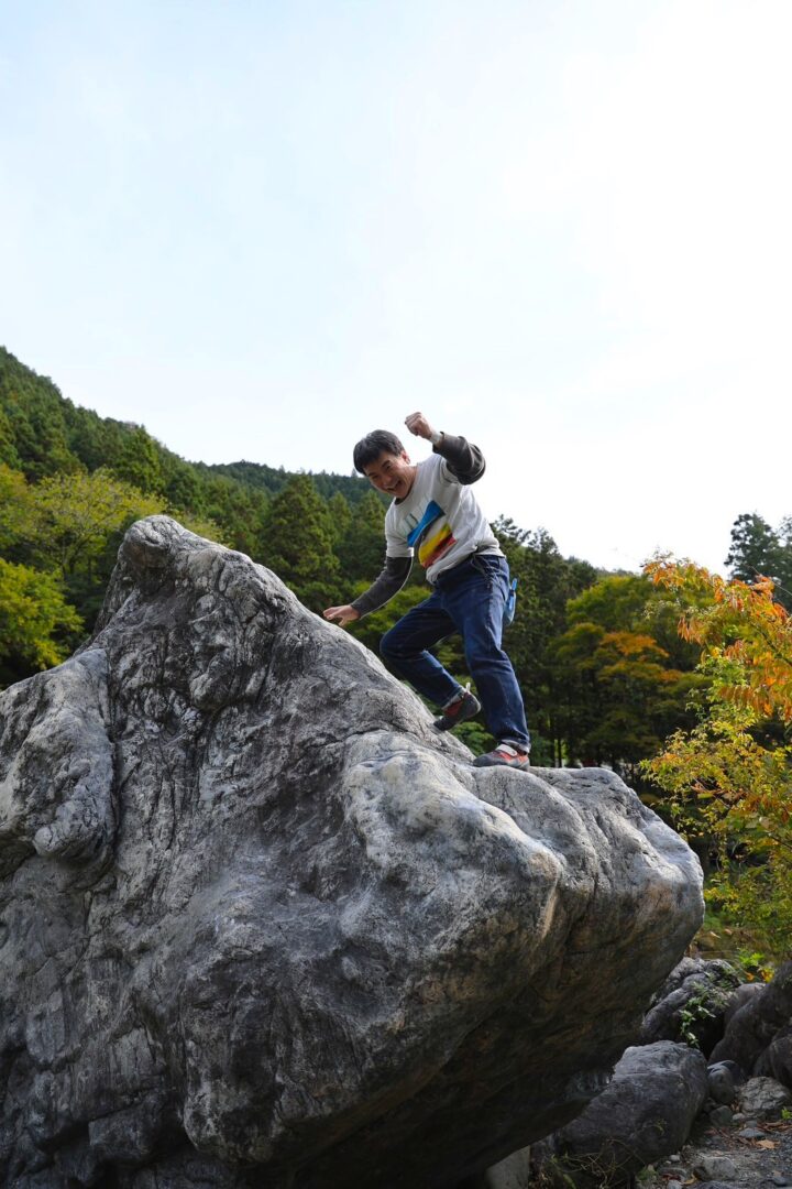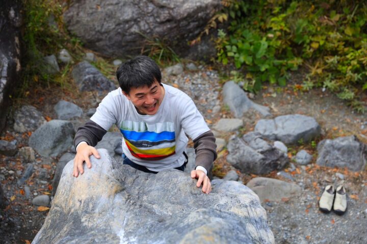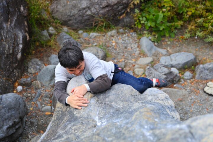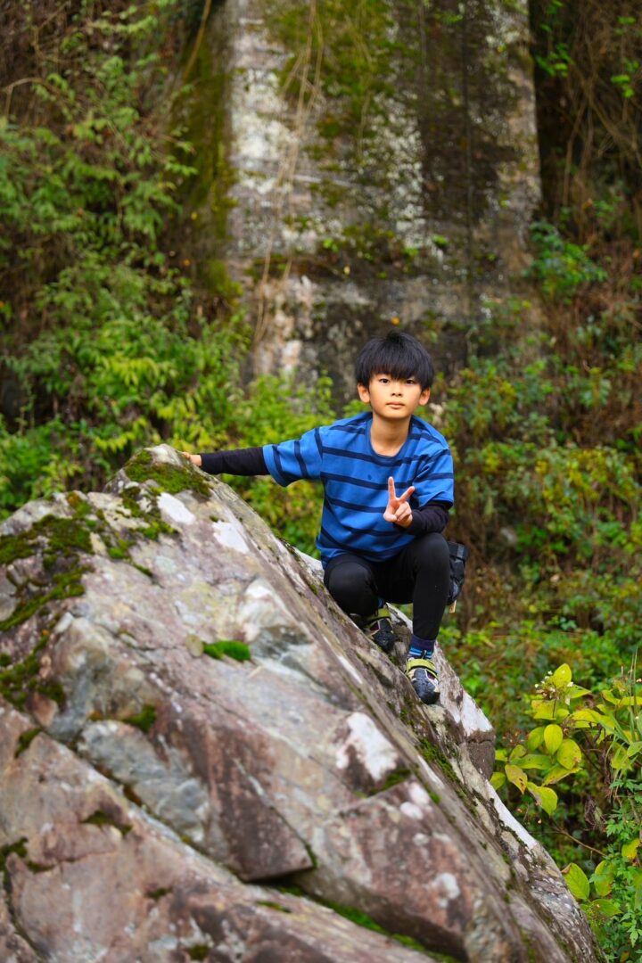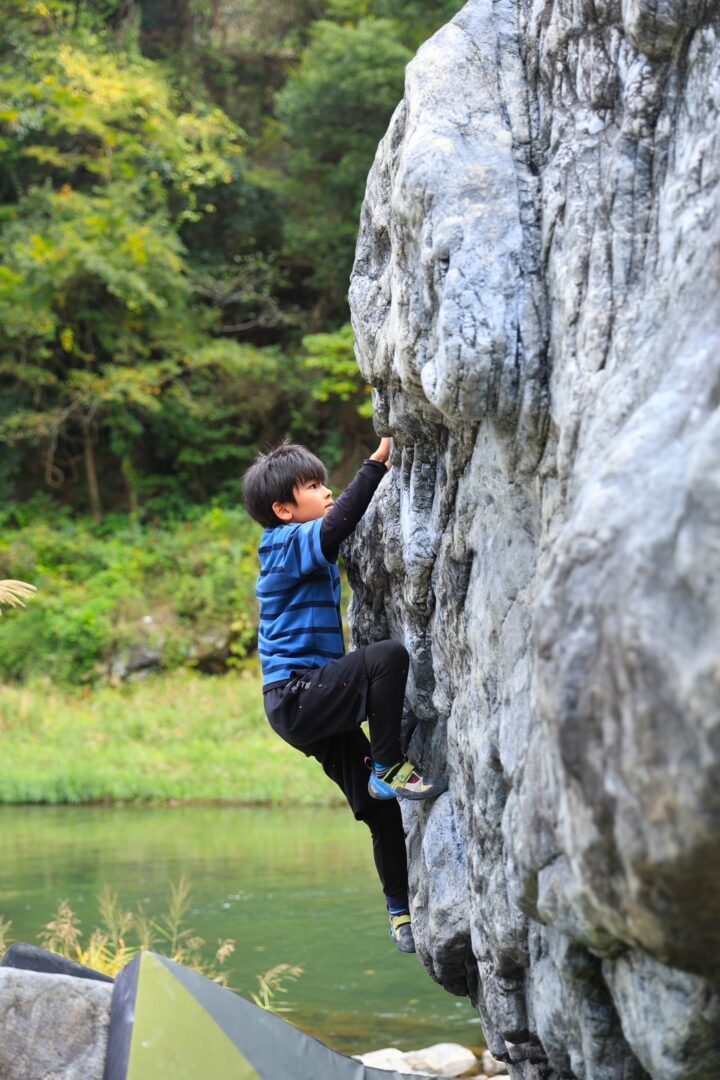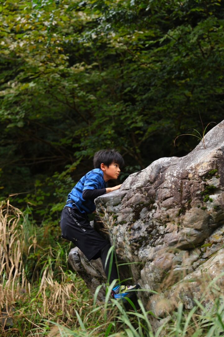 結構高い岩だけど、ヒロト君スイスイ登る