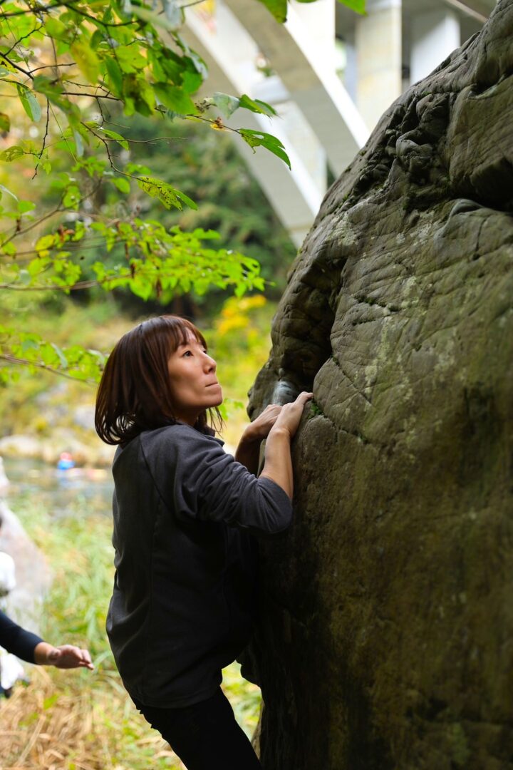 マリさん、傾斜のある岩にも挑戦