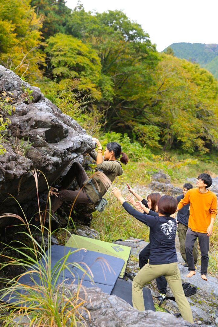 外岩のはじめの一歩ってハードルが高いですよね。でもジムスタッフと一緒なら心強い◎ 春と秋に開催していますので、気になる方はスタッフにぜひお声がけください。