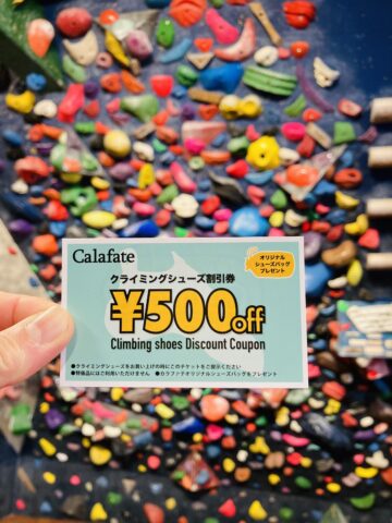 いまシューズがどんどん値上がりしているので、欲しくても ちょっと躊躇しちゃいますよね…。でも割引券があれば心が動く! 得してラッキー&NEWシューズでウキウキ。クライミングライフが益々楽しくなっちゃうね◎