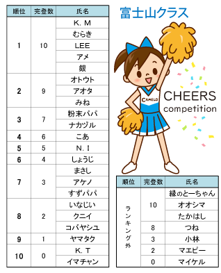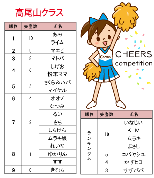 チアコンにご参加いただいたみなさま、ありがとうございました! …チアコンってなんだっけ?って一瞬思ったでしょ!もぉ~。高尾山・富士山・エベレストクラスのファイル課題を登ったアレですよ!結構難しくてみんな苦戦してましたよね。でもみなさんのがんばる姿から元気をいっぱいもらいました。