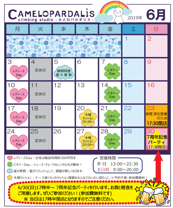 そして6/30(日)は7周年パーティのため、17:30閉店となります!