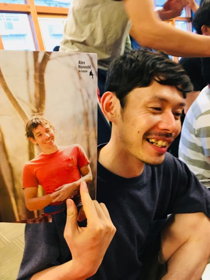 世界で初めてエルキャピタンをフリーソロした、あのアレックス・オノルドさんもパーティーに参加してくれました!なんて。