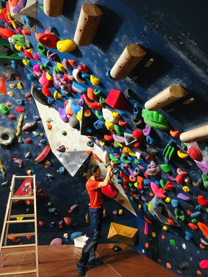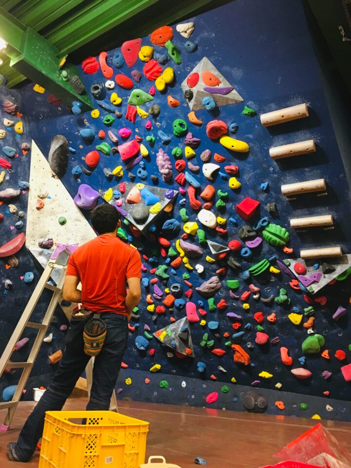 2019年4月 140°ホールド替え完了!新課題でボルダリング!140°壁がセッションウォールに変身!