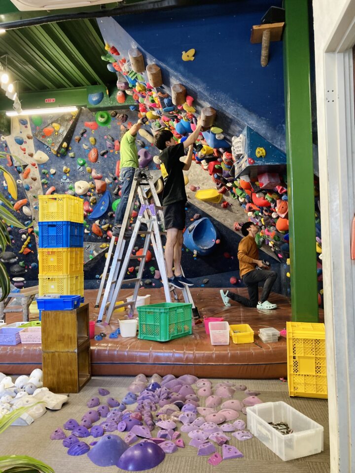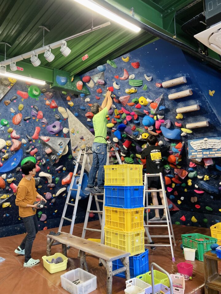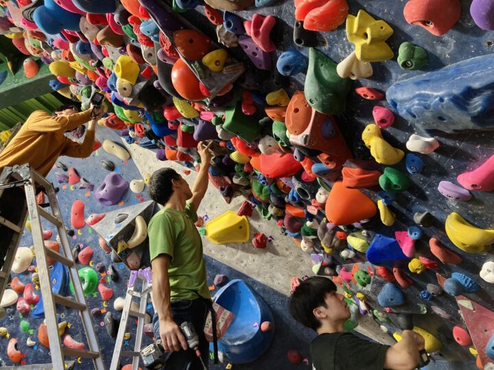 セッションWALLはその名の通り、みんなで課題を作りっこして登りっこ(セッション)するための壁。なので、課題が作りやすいようにホールドを配置するのが大事なのです。